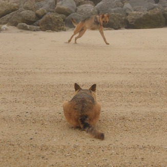Ao fim do dia a minha Dona voltou. E eu, que já estava mais acordado, dei logo sinal! É a minha Dona! É a minha Dona. Mas, mais uma vez, vieram buscar a Tita e deixaram-me para ali sozinho... Fiquei muito triste e fartei-me de chorar... Mas, eis senão quando, a Tita voltou para baixo e o Tio Nuno veio-me buscar! Não sei enquanto é que eu descobri como é que se andava em três patas! Mas lá fui eu!!!