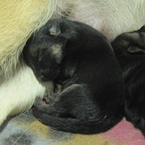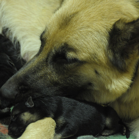 Como podem ver nas fotografias, os cachorros nascem com umas cabecinhas redondinhas e bochechudos e movem-se, arrastando-se, ao acaso. E são estas características que desencadeiam em nós, cadelas, o comportamento maternal e nos fazem reconhecer esses seres que nunca vimos como os nossos bebés. Mas claro que as hormonas também são importantes! Principalmente antes do nascimento. São elas que nos fazem, sem sabermos sequer que estamos grávidas, começar a preparar o parto.
